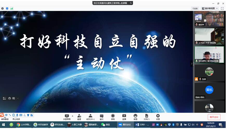 2021年8月9日上午,365英国上市官方网站邀请张家口市委讲师团成员、我校社科部赵宝新教授为全校研究生在线讲授了主题为“弘扬伟大建党精神助力科技自主自强”的开学第一课。各院系共计300余人参会。